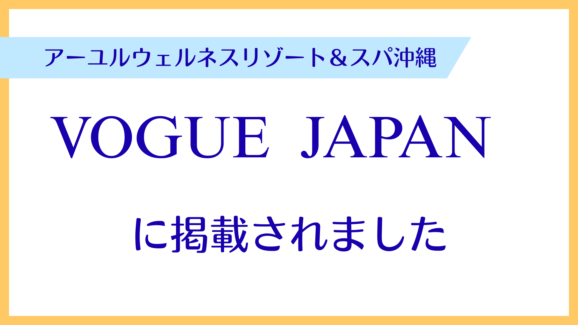 このたび、「アーユルヴェルネス リゾート&スパ沖縄」が Vogue Japan の記事「アーユルヴェーダで体・心・魂の三位一体を整える。沖縄発ウェルネスリゾートで過ごす深い休息の時間」に紹介されました。